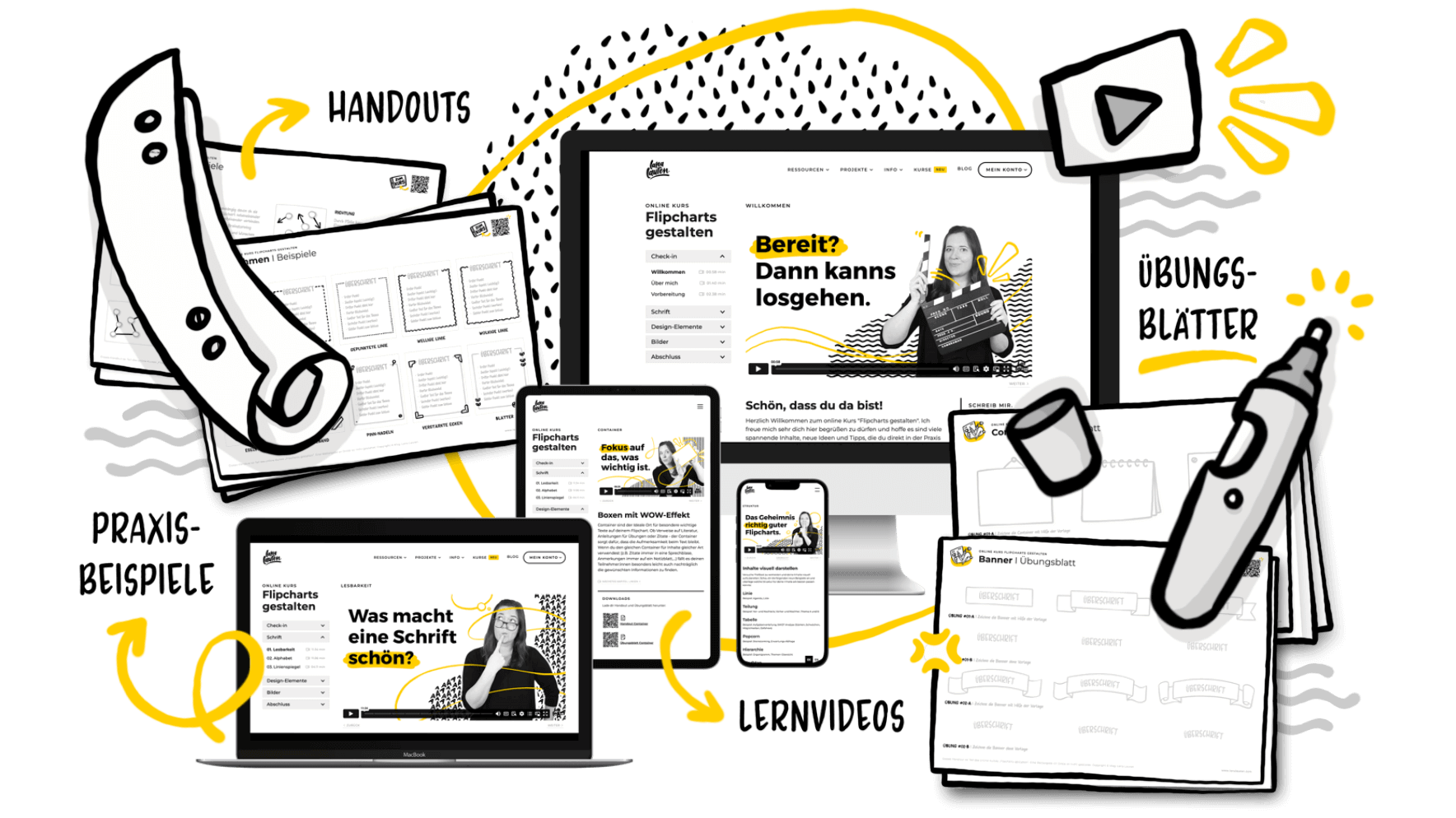 Here you will find a treasure trove of inspiration, practical step-by-step instructions, templates and various resources to improve your flipcharts. Have a look around. There is lots to be discovered.
