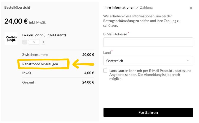 Step #04 Click “Add discount code” (on the left side of the window, below the subtotal).